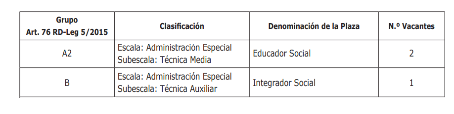 Oferta de empleo público para el año 2024 del Ayuntamiento de Alcantarilla: Educador social, grupo/subgrupo A2, número de plazas: 2. Integrador social. Grupo B. Número de plazas: 1.