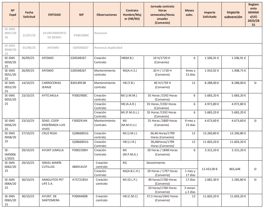 Resolución de la Directora Gerente del Servicio Murciano de Salud, por la que se concede subvenciones dirigidas a la Inclusión Sociolaboral, de personas con trastorno mental grave y/o adicciones en proceso de recuperación, dentro del Programa Eurovida Salud Mental, cofinanciadas por el Fondo Social Europeo Plus (FSE+), subprograma 1.2 “Inserción laboral de personas con trastorno mental grave y/o adicciones en proceso de recuperación en el mercado ordinario”, año 2025 (solicitudes de julio a octubre de 2025)