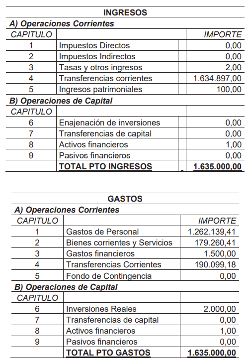 Queda aprobado definitivamente el Presupuesto General para el ejercicio 2026, siendo el resumen a nivel de capítulos el siguiente: